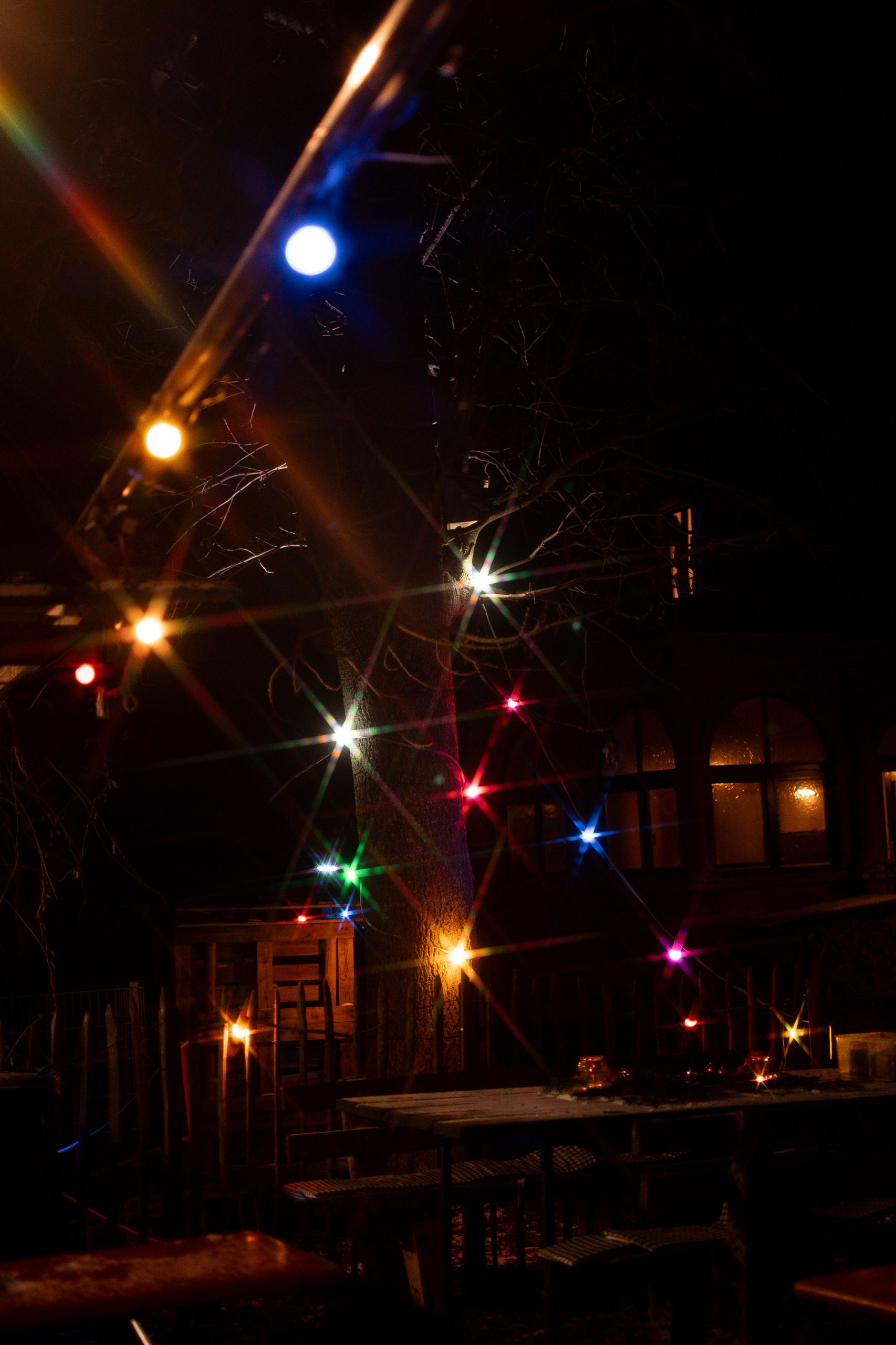 Unser Garten wird am Weihnachtsmarkt mit ganz vielen Lichtern geschmückt und leuchtet und strahlt wie an keinem anderen Tag im Jahr.